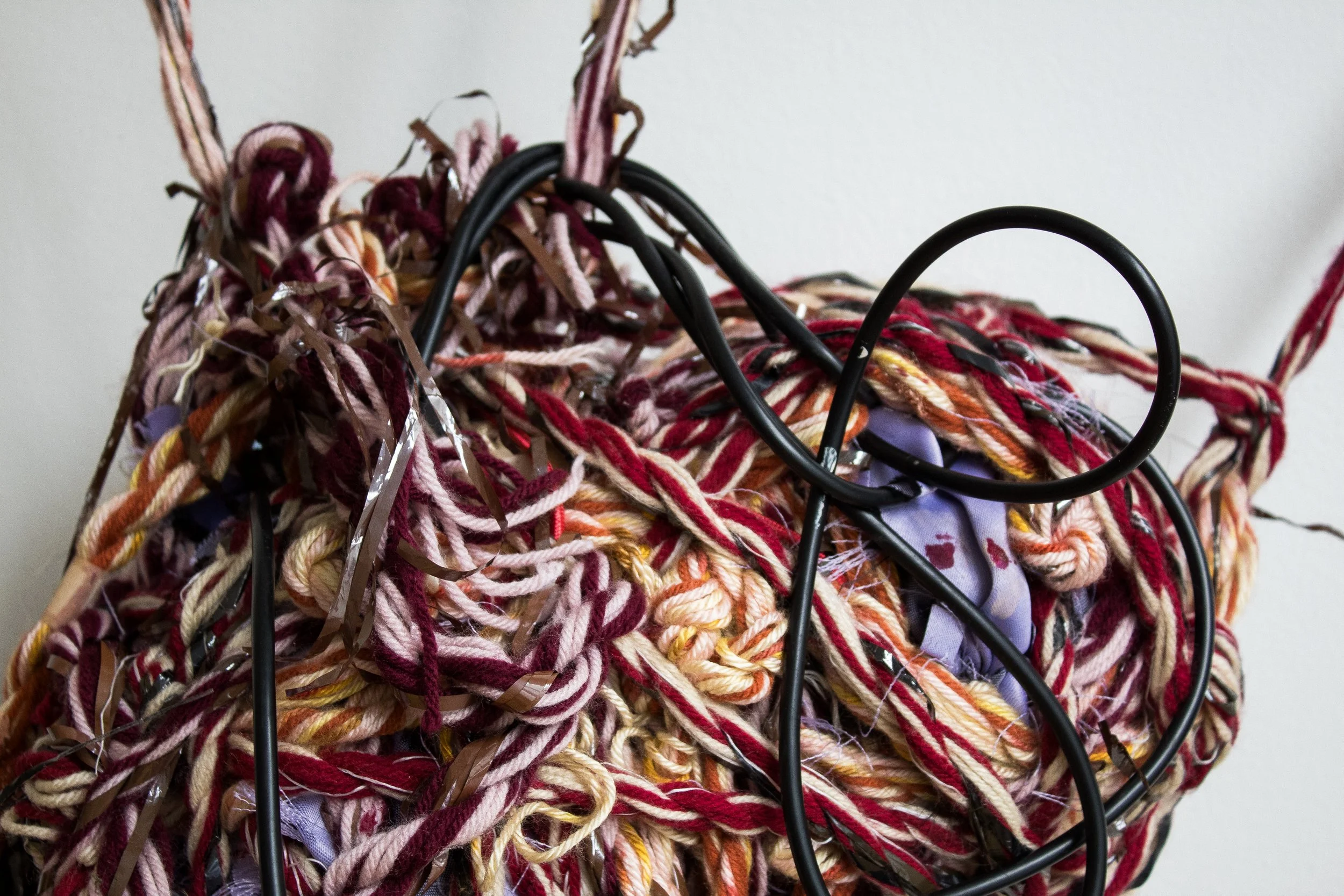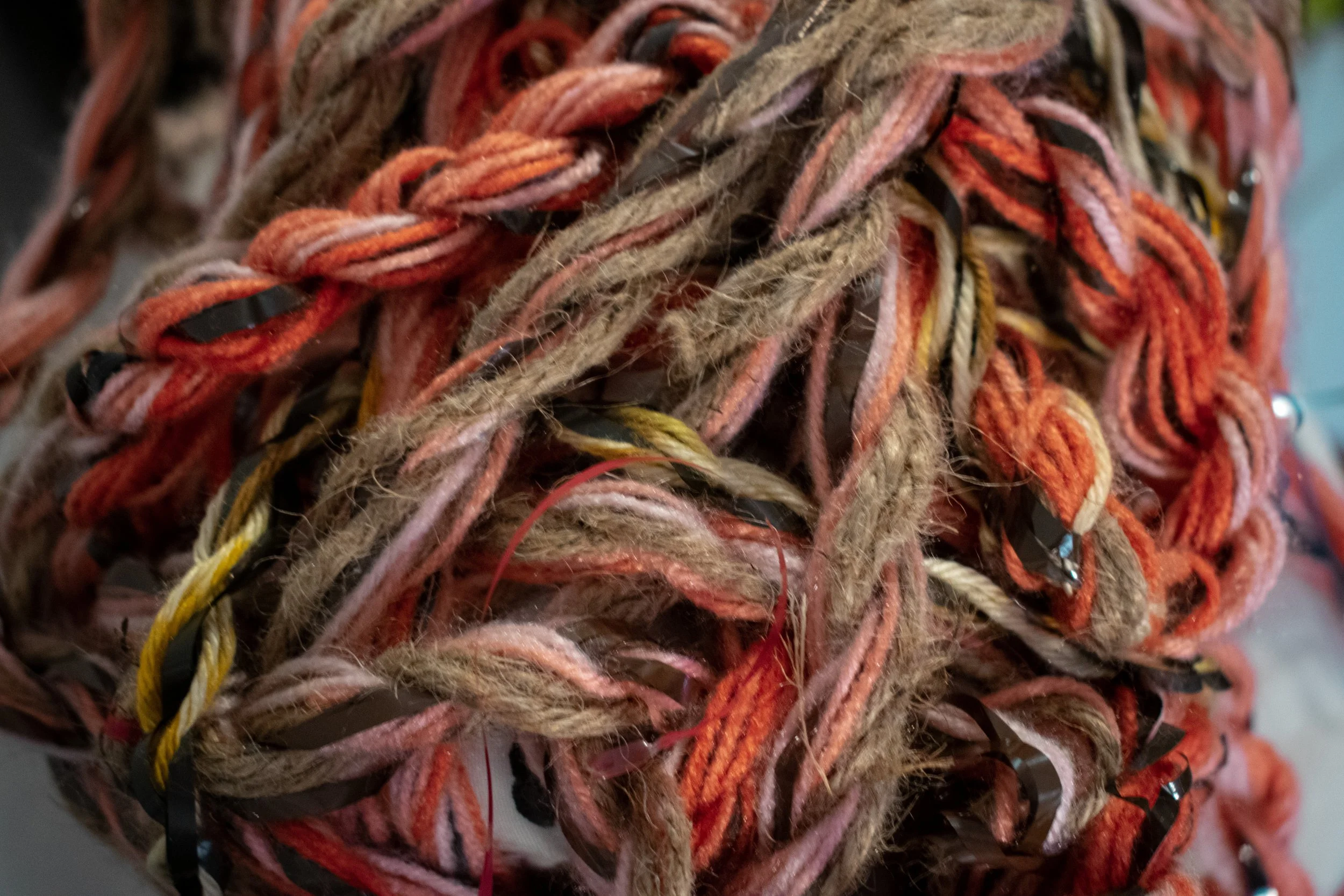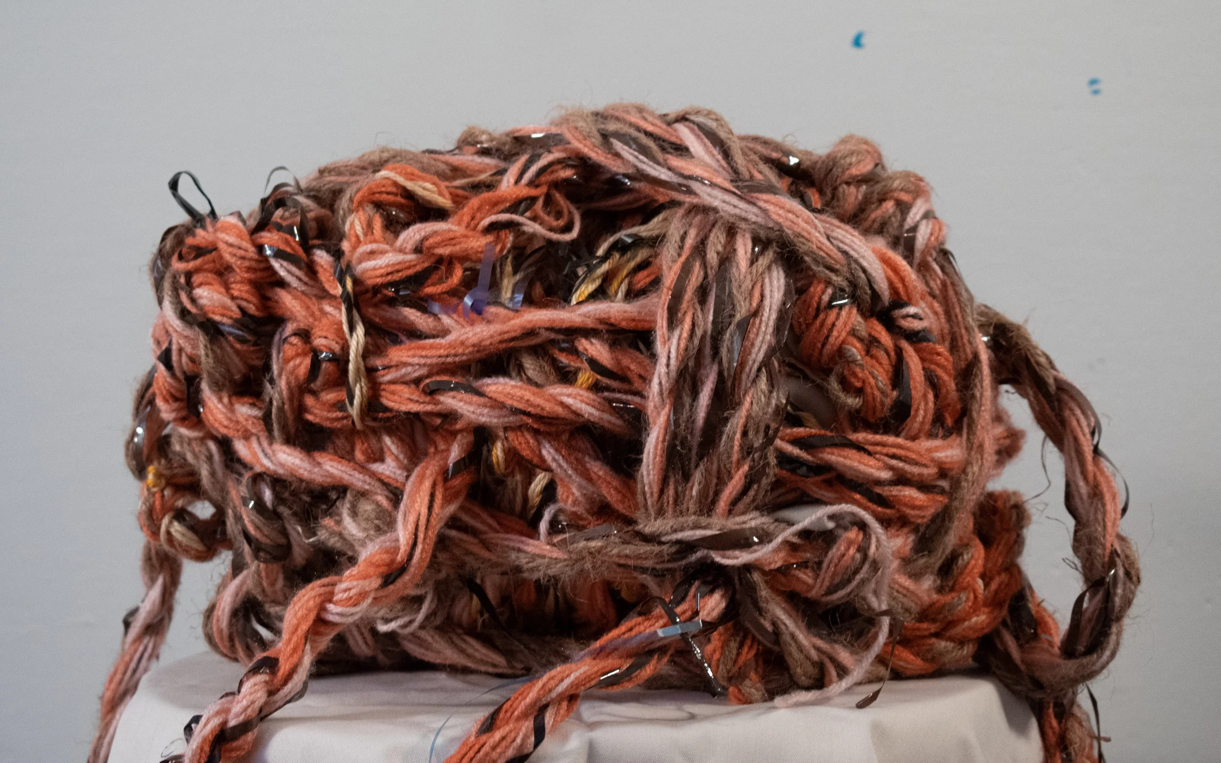 “Living” Installations constructed out of found materials synthesized into handmade rope. Individual “organs” or “organisms” in the greater lattice are either interactable by viewers through listening, speaking, holding, and looking into or in some way exhibit signs of life such as breathing, moving, and being free standing/hanging.