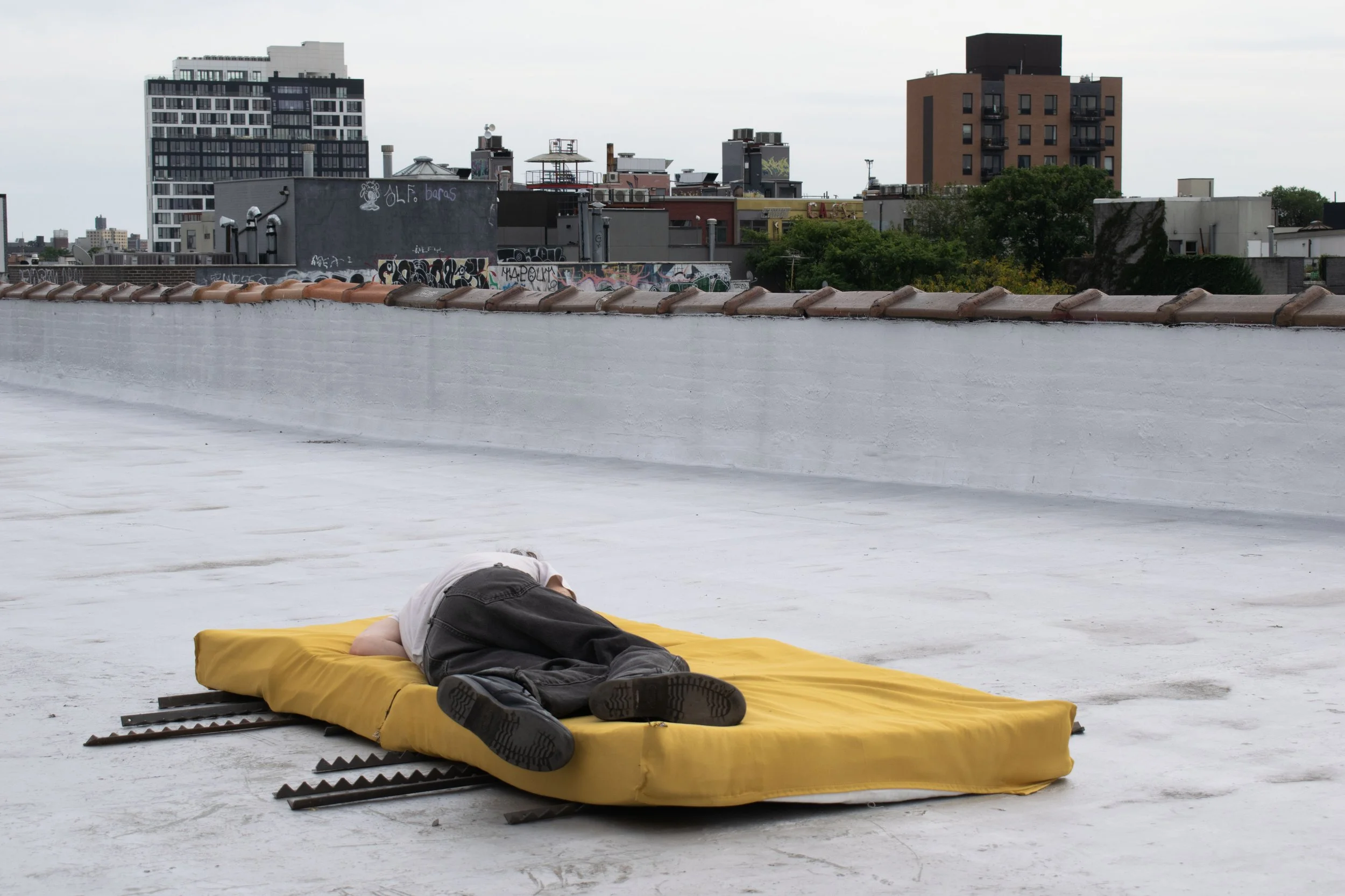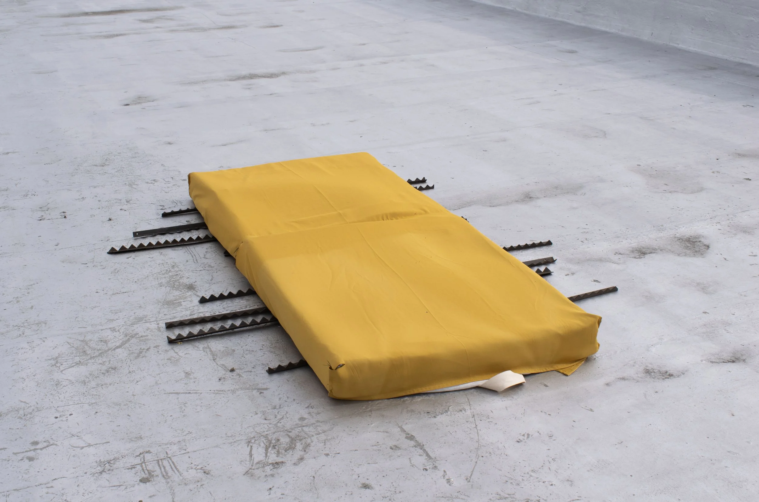 Materials: Scavenged Foams, Curtains, Strapping Twill, Hostile Architecture removed by the artist from around NYC.